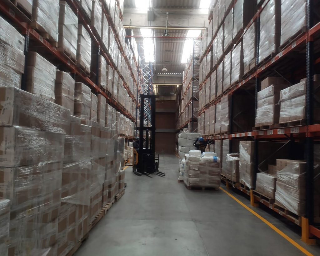 La Bodega principal con capacidad de almacenamiento de 6.000m2, áreas libres para almacenamiento de carga suelta, estanterías y áreas exclusivas de seguridad acondicionadas para efectuar alistamientos de pedidos.
